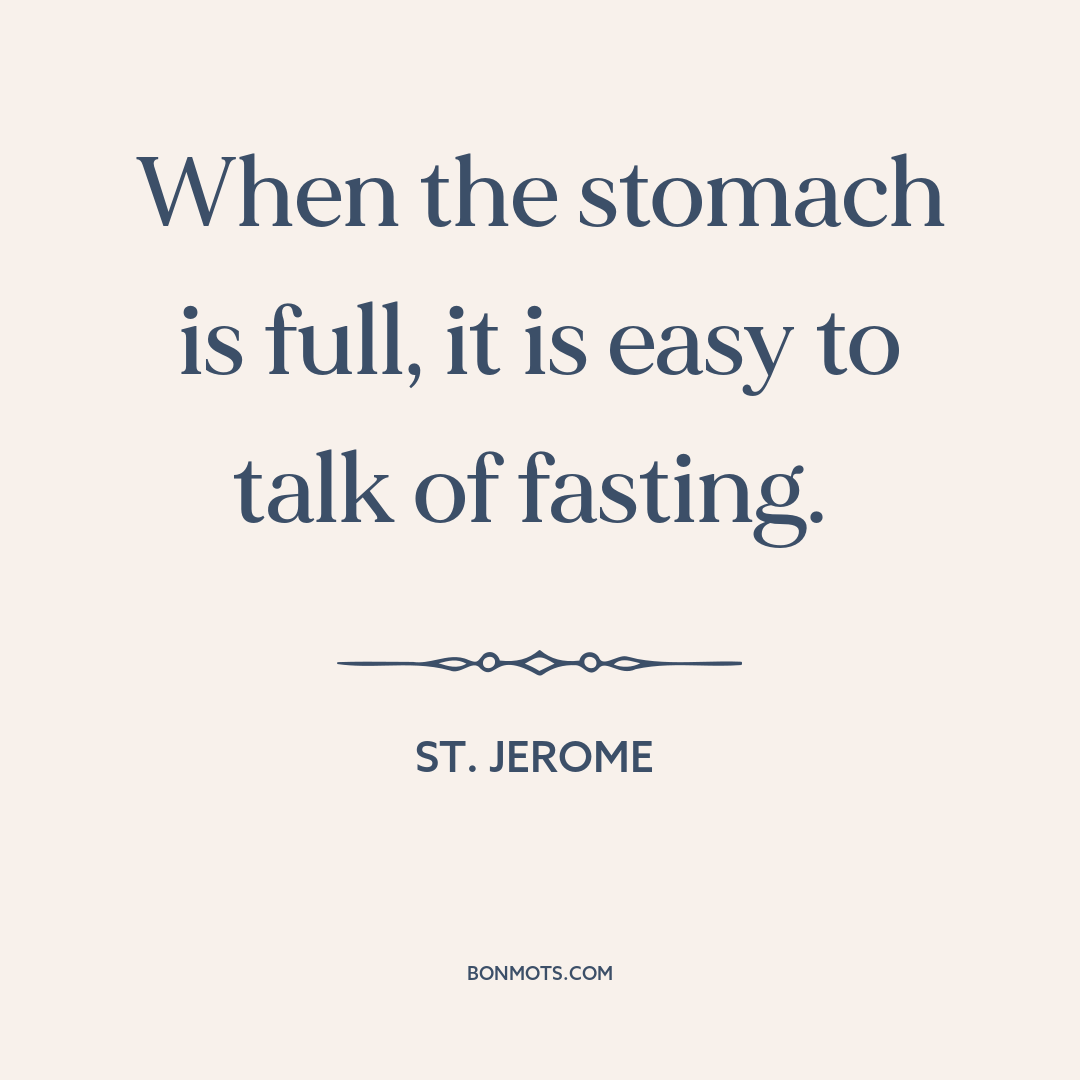 When the stomach is full, it is easy to talk of fasting.