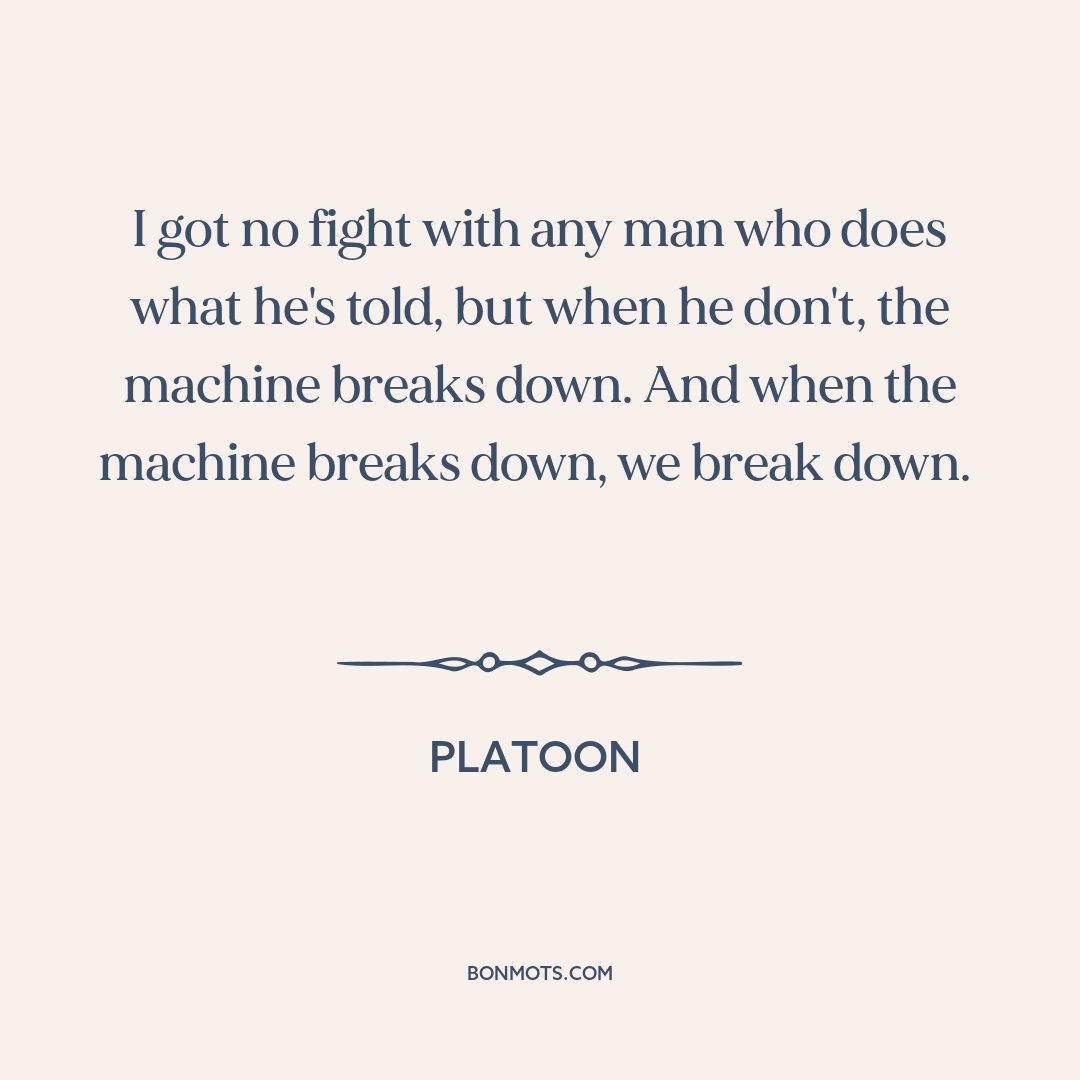 I got no fight with any man who does what he's told, but when he don't, the machine breaks down. And when the machine breaks down, we break down.