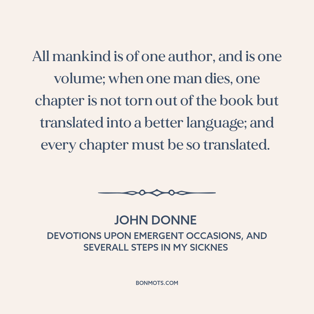 All mankind is of one author, and is one volume; when one man dies, one chapter is not torn out of the book but translated into a better language; and every chapter must be so translated.