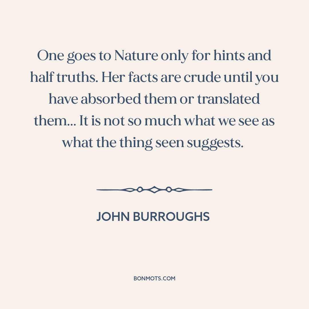 One goes to Nature only for hints and half truths. Her facts are crude until you have absorbed them or translated them... It is not so much what we see as what the thing seen suggests.