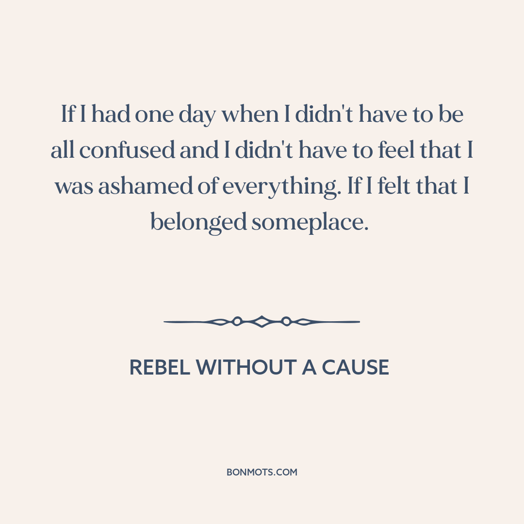 If I had one day when I didn't have to be all confused and I didn't have to feel that I was ashamed of everything. If I felt that I belonged someplace.