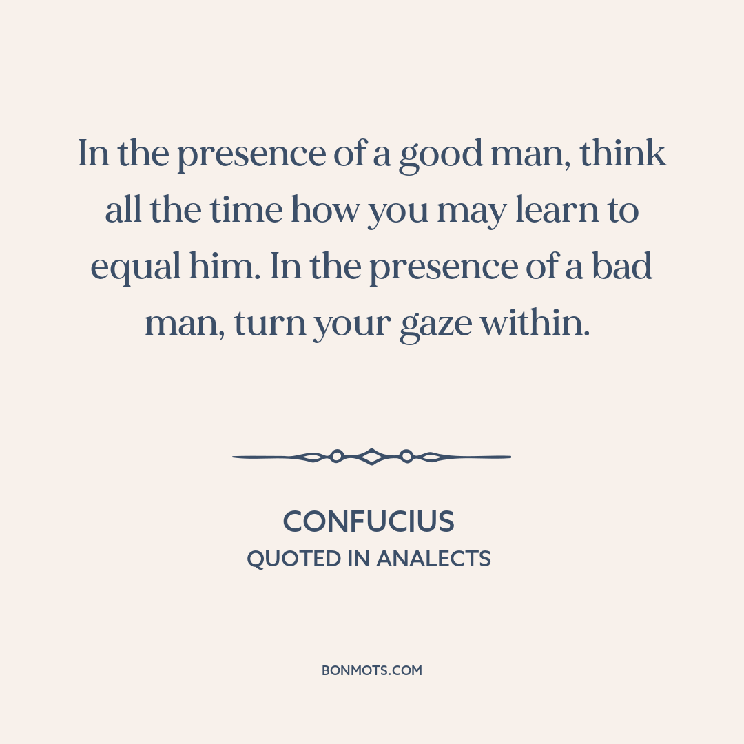 In the presence of a good man, think all the time how you may learn to equal him. In the presence of a bad man, turn your gaze within.