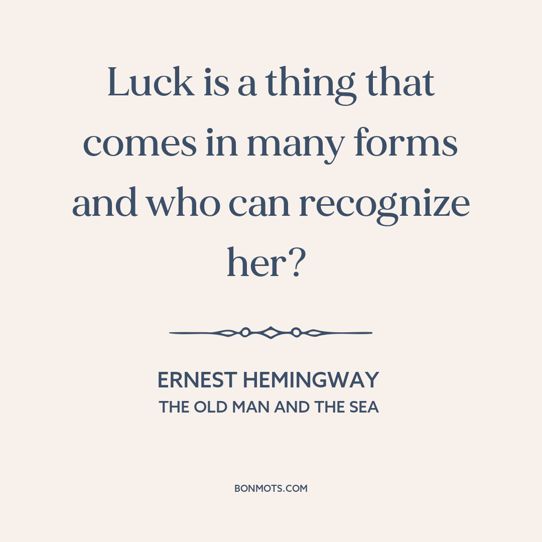 Luck is a thing that comes in many forms and who can recognize her?