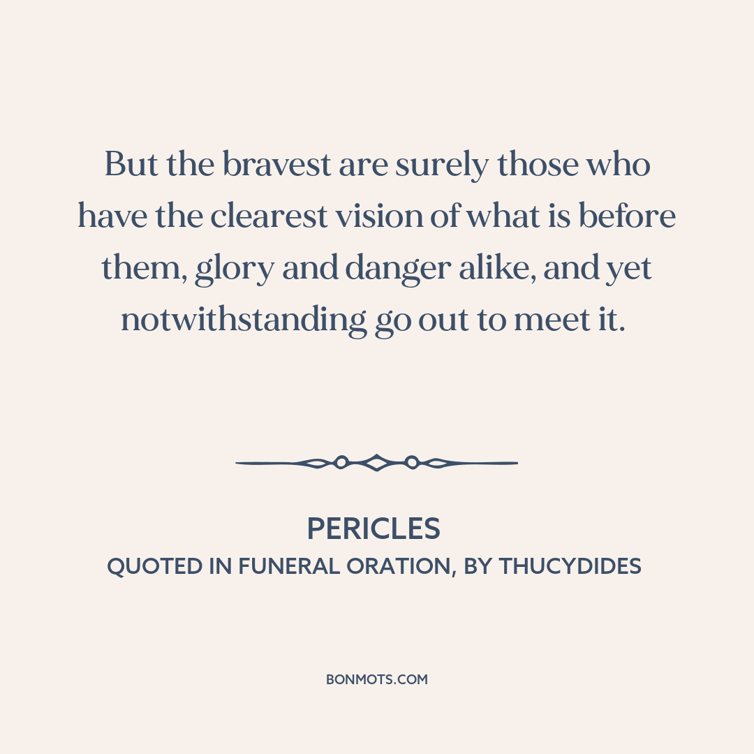 But the bravest are surely those who have the clearest vision of what is before them, glory and danger alike, and yet notwithstanding go out to meet it.