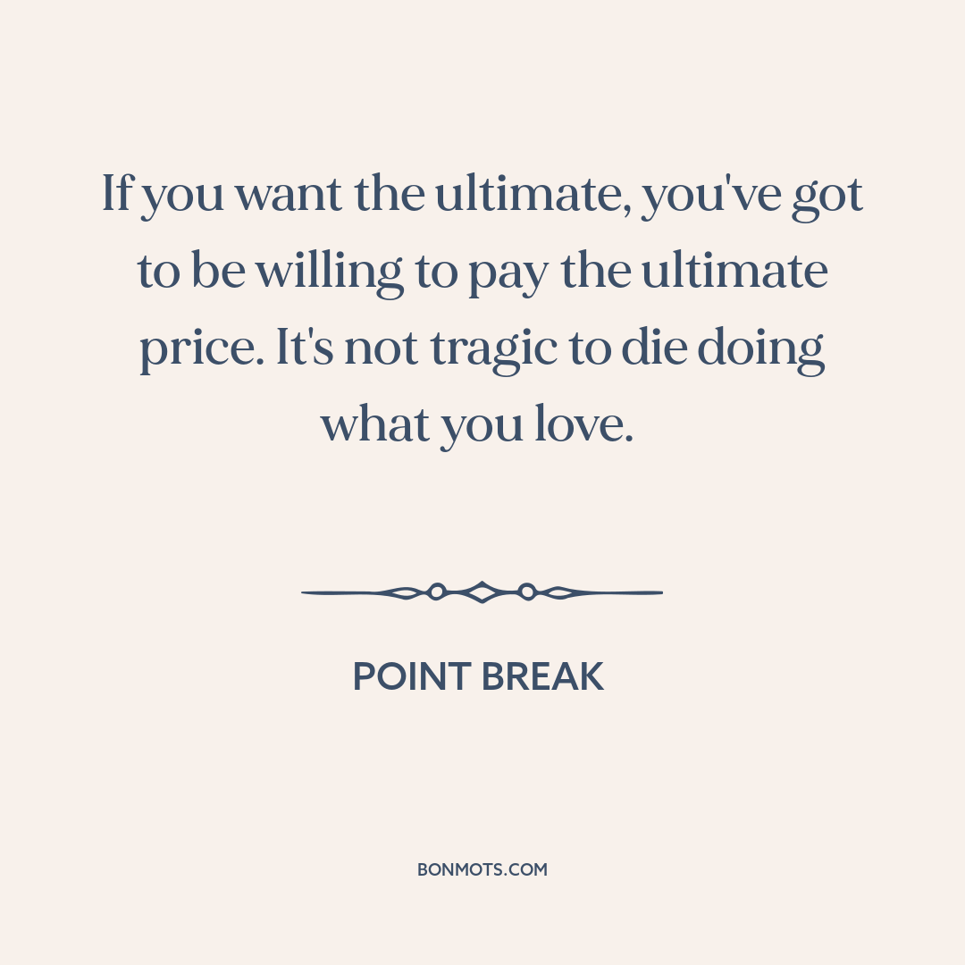 If you want the ultimate, you've got to be willing to pay the ultimate price. It's not tragic to die doing what you love.