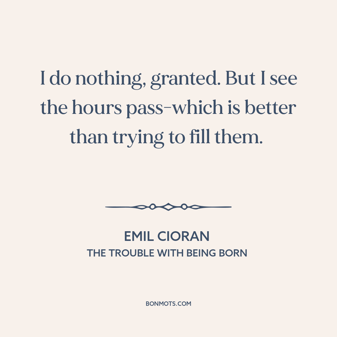 I do nothing, granted. But I see the hours pass-which is better than trying to fill them.