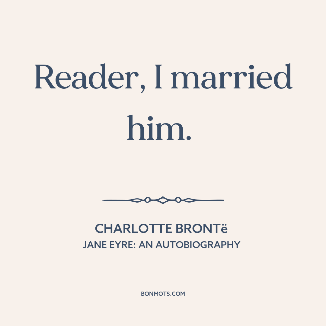 Brontë, Charlotte, [published as Currer Bell]. Jane Eyre: An Autobiography. Vol. 3, London: Smith, Elder & Co., 1847, ch. 38.