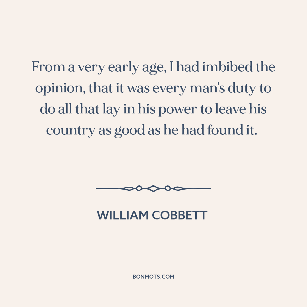 From a very early age, I had imbibed the opinion, that it was every man's duty to do all that lay in his power to leave his country as good as he had found it.