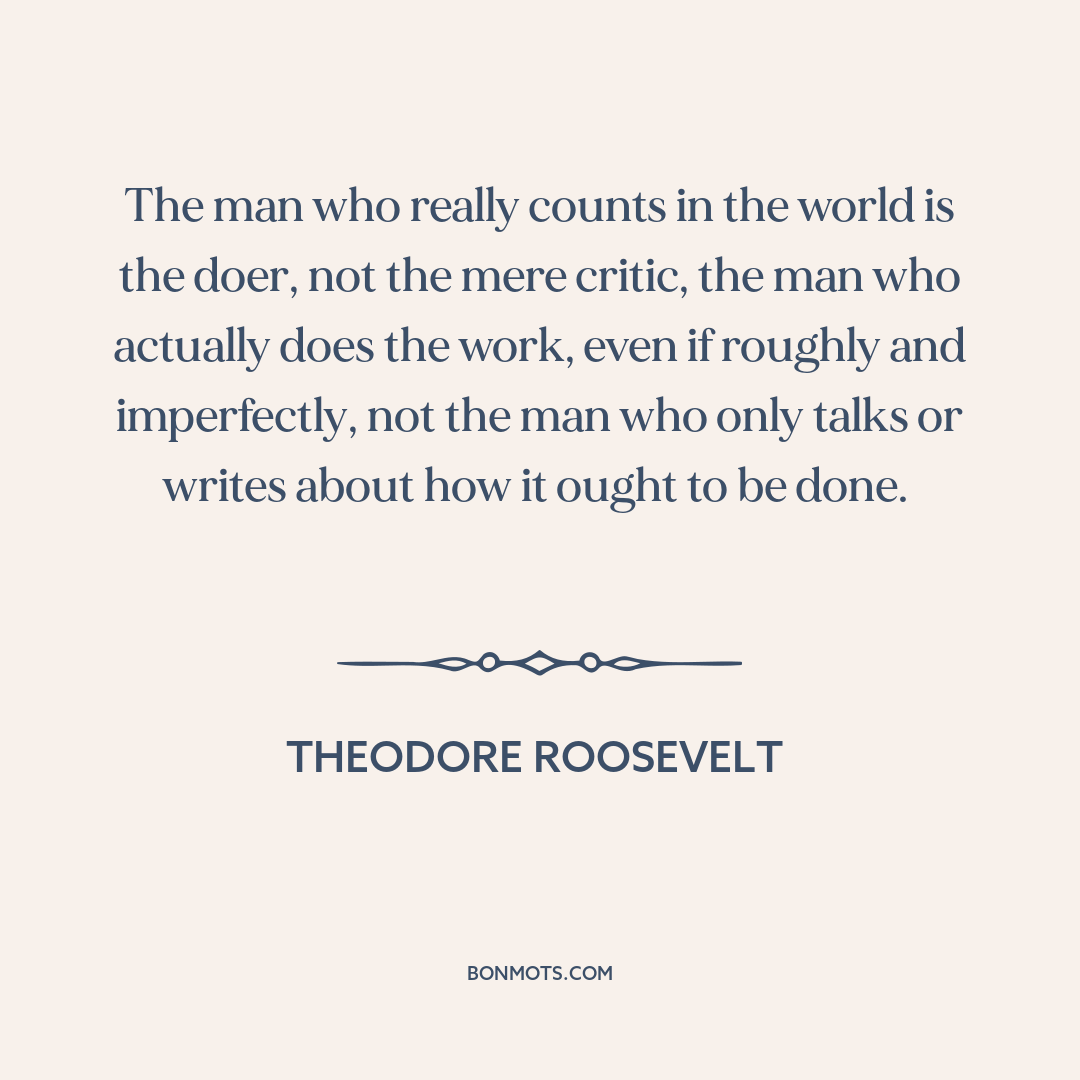 The man who really counts in the world is the doer, not the mere critic, the man who actually does the work, even if roughly and imperfectly, not the man who only talks or writes about how it ought to be done.