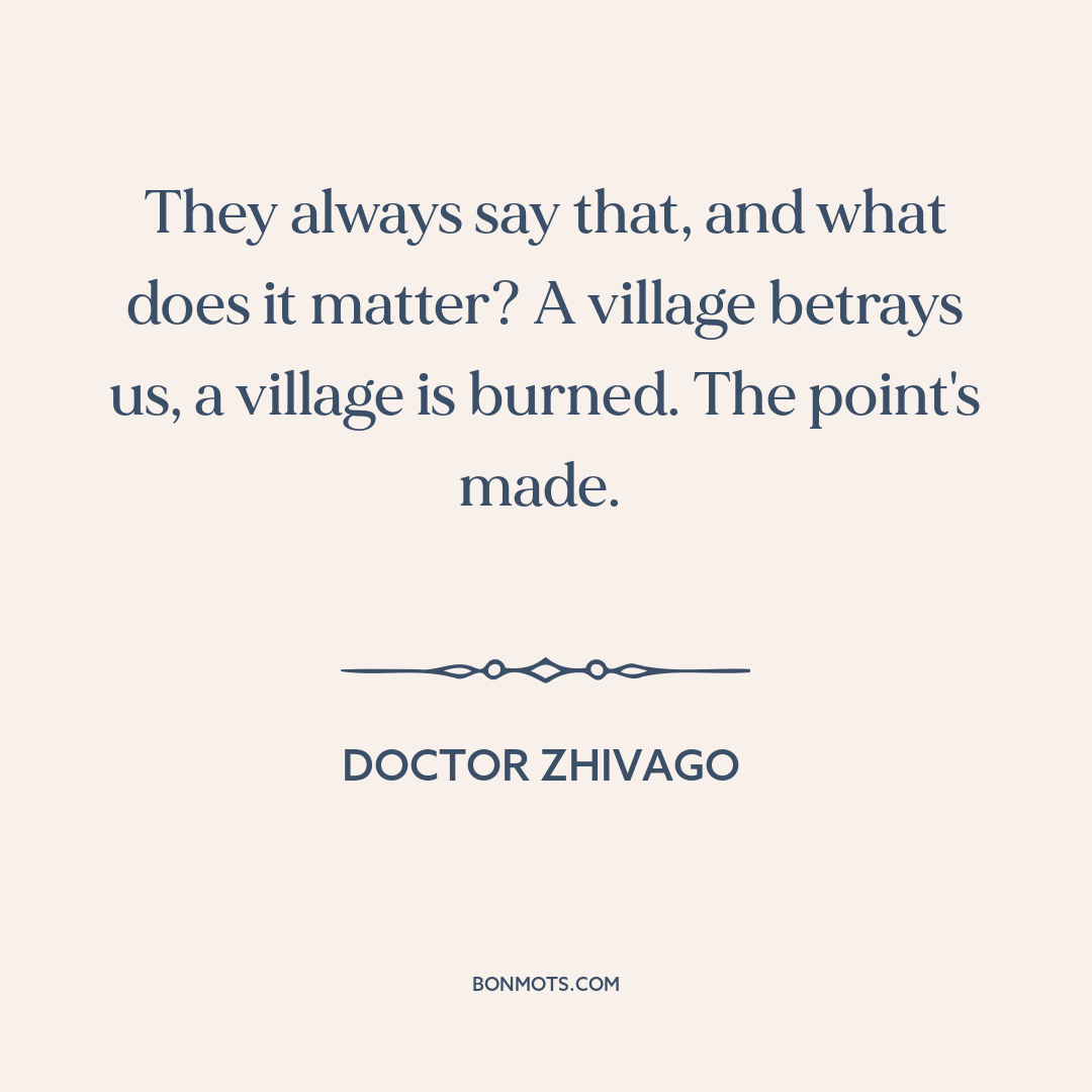 They always say that, and what does it matter? A village betrays us, a village is burned. The point's made.