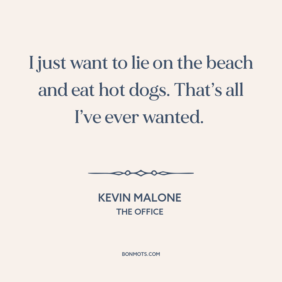 I just want to lie on the beach and eat hot dogs. That’s all I’ve ever wanted.