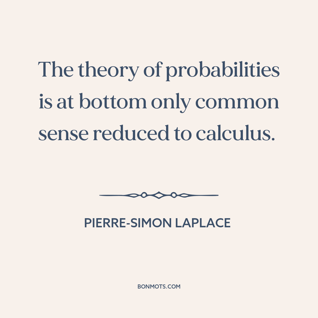 The theory of probabilities is at bottom only common sense reduced to calculus.
