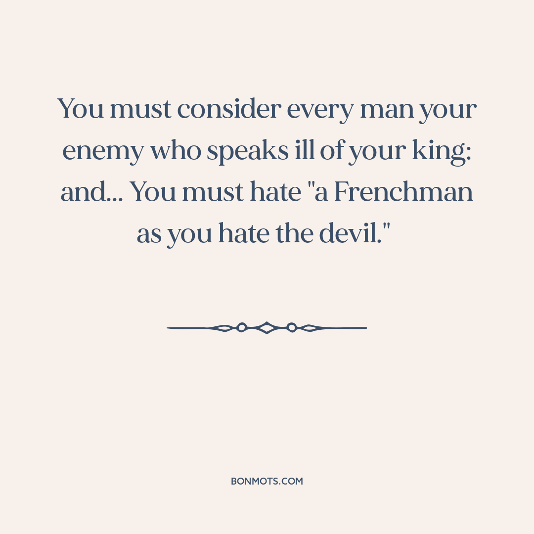 You must consider every man your enemy who speaks ill of your king: and... You must hate "a Frenchman as you hate the devil."