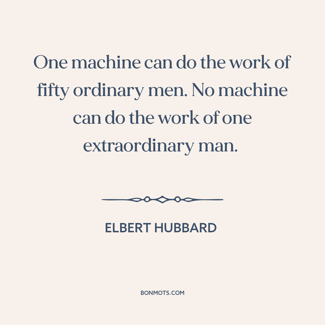 One machine can do the work of fifty ordinary men. No machine can do the work of one extraordinary man.