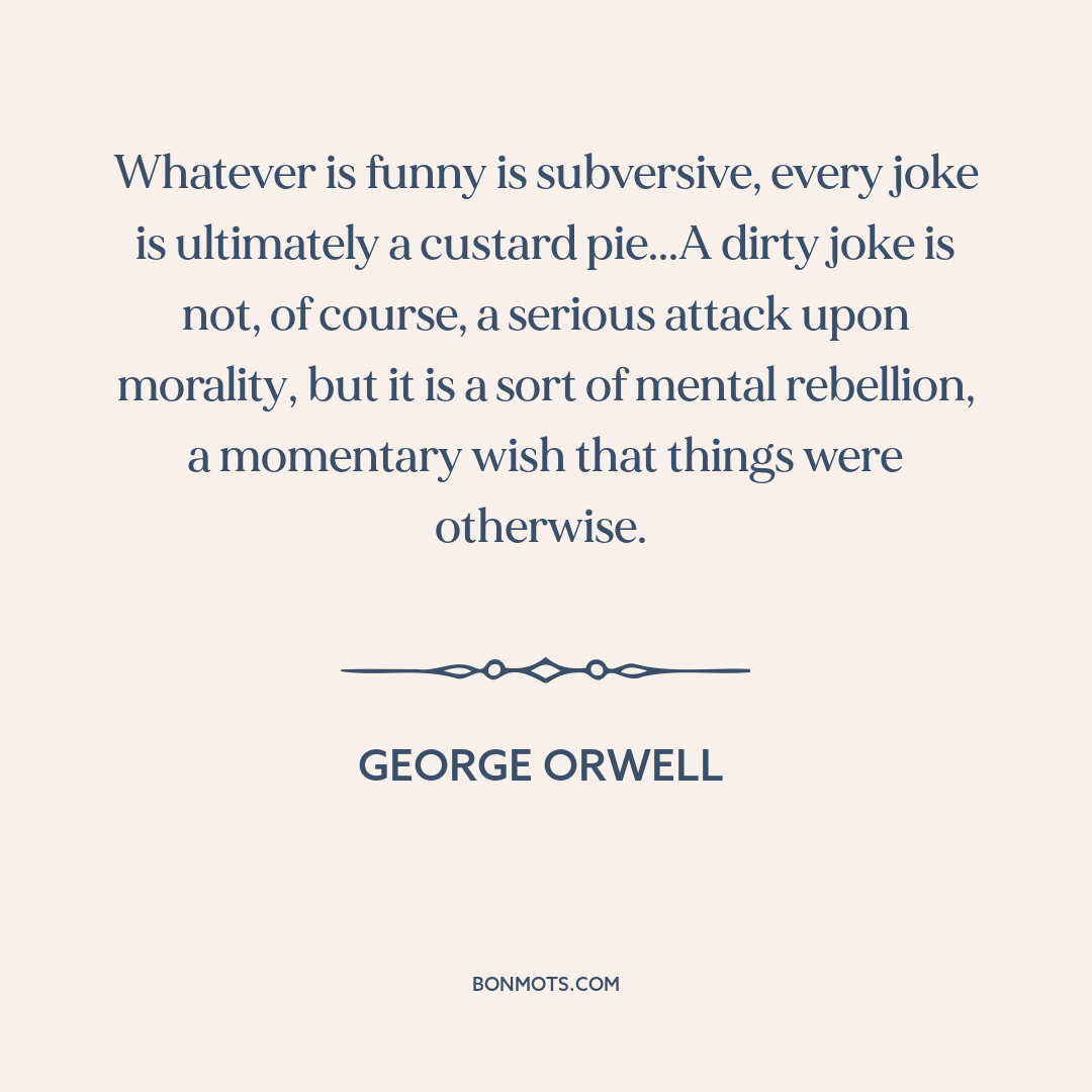 Whatever is funny is subversive, every joke is ultimately a custard pie...A dirty joke is not, of course, a serious attack upon morality, but it is a sort of mental rebellion, a momentary wish that things were otherwise.