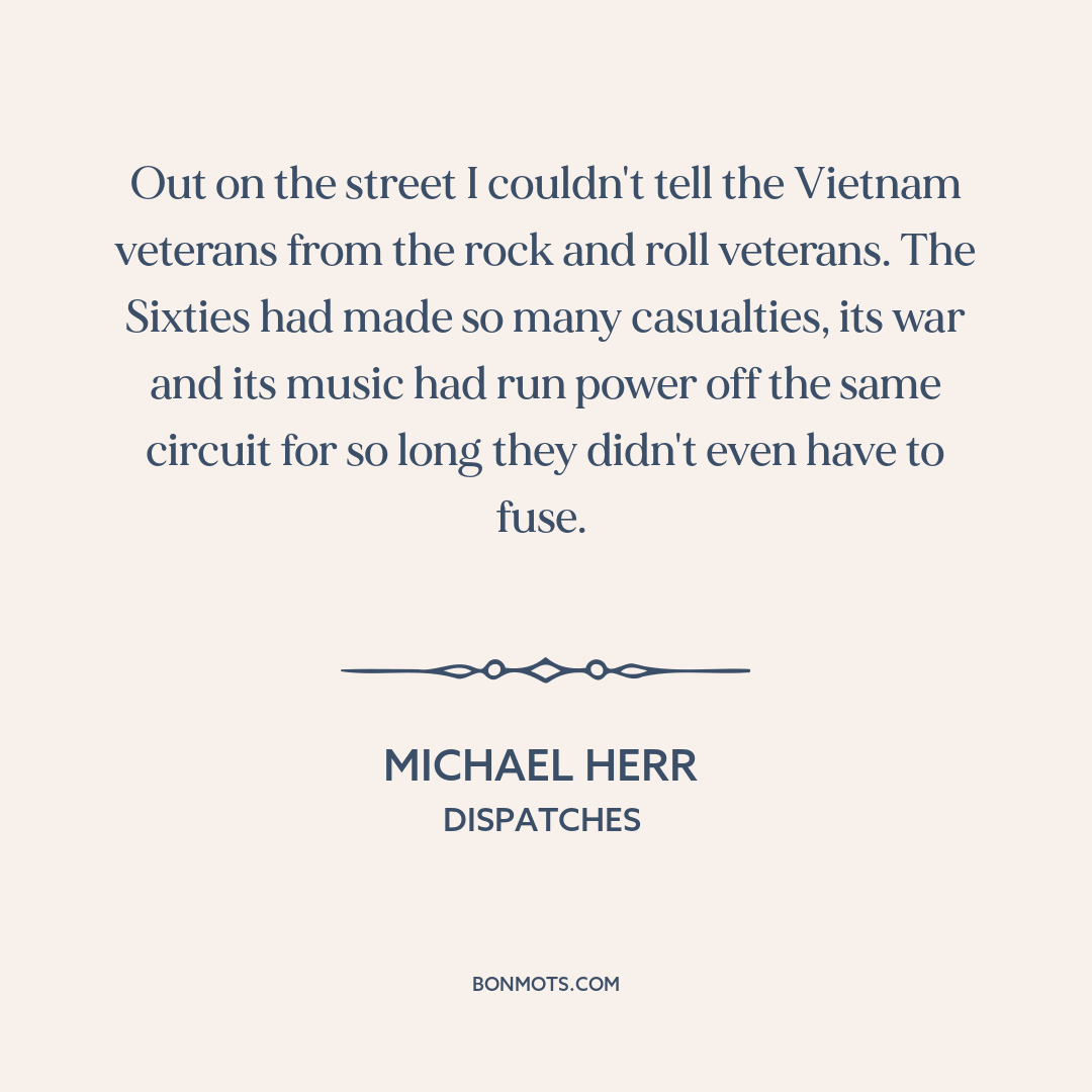 Out on the street I couldn't tell the Vietnam veterans from the rock and roll veterans. The Sixties had made so many casualties, its war and its music had run power off the same circuit for so long they didn't even have to fuse.