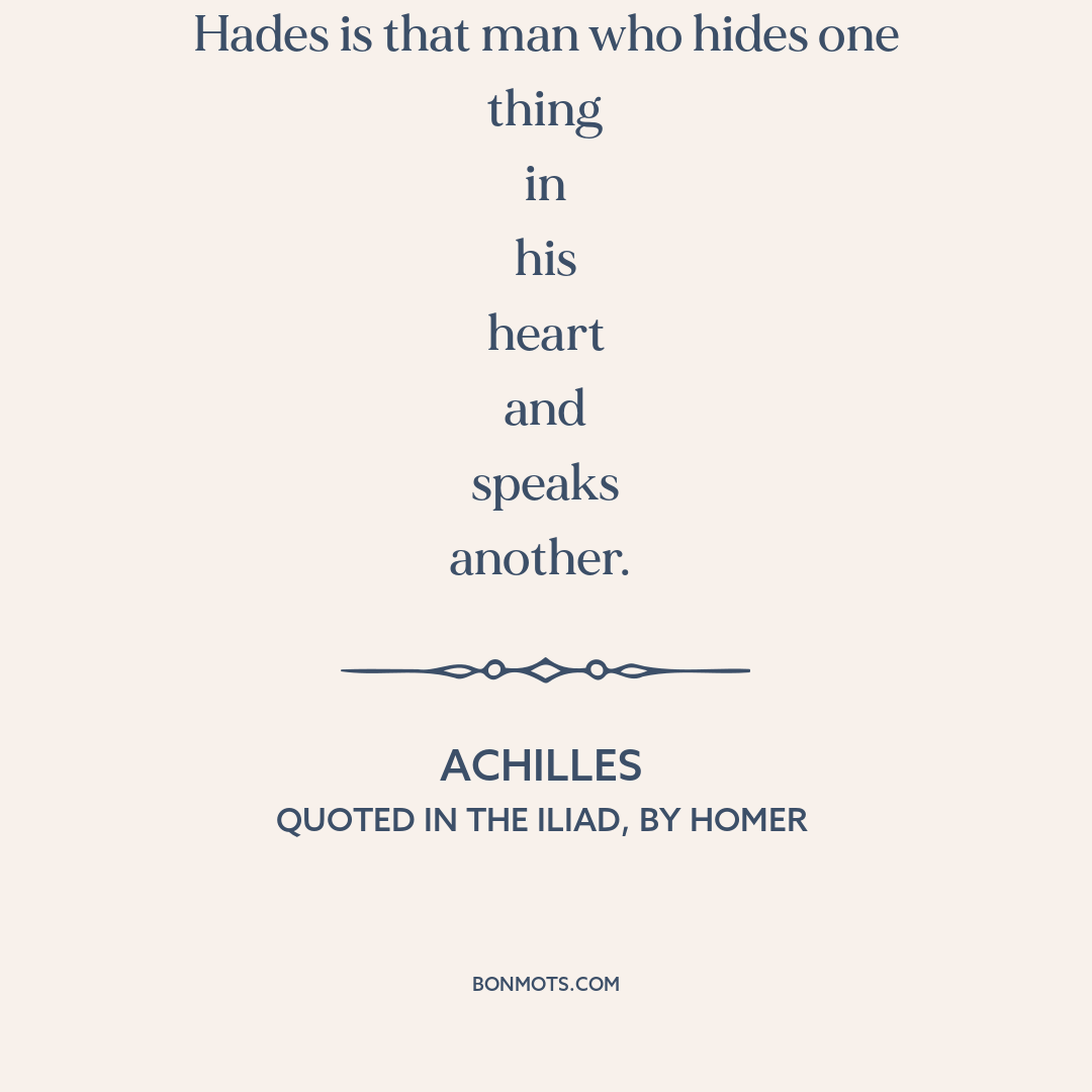Hateful to me as the gates of Hades is that man who hides one thing in his heart and speaks another.