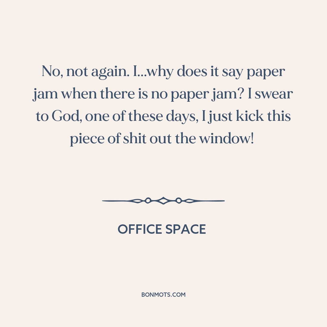 No, not again. I...why does it say paper jam when there is no paper jam? I swear to God, one of these days, I just kick this piece of shit out the window!