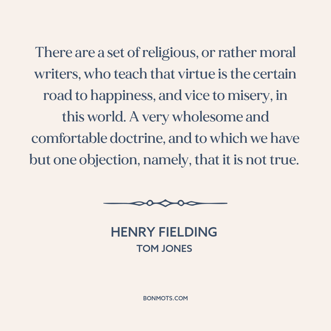There are a set of religious, or rather moral writers, who teach that virtue is the certain road to happiness, and vice to misery, in this world. A very wholesome and comfortable doctrine, and to which we have but one objection, namely, that it is not true.
