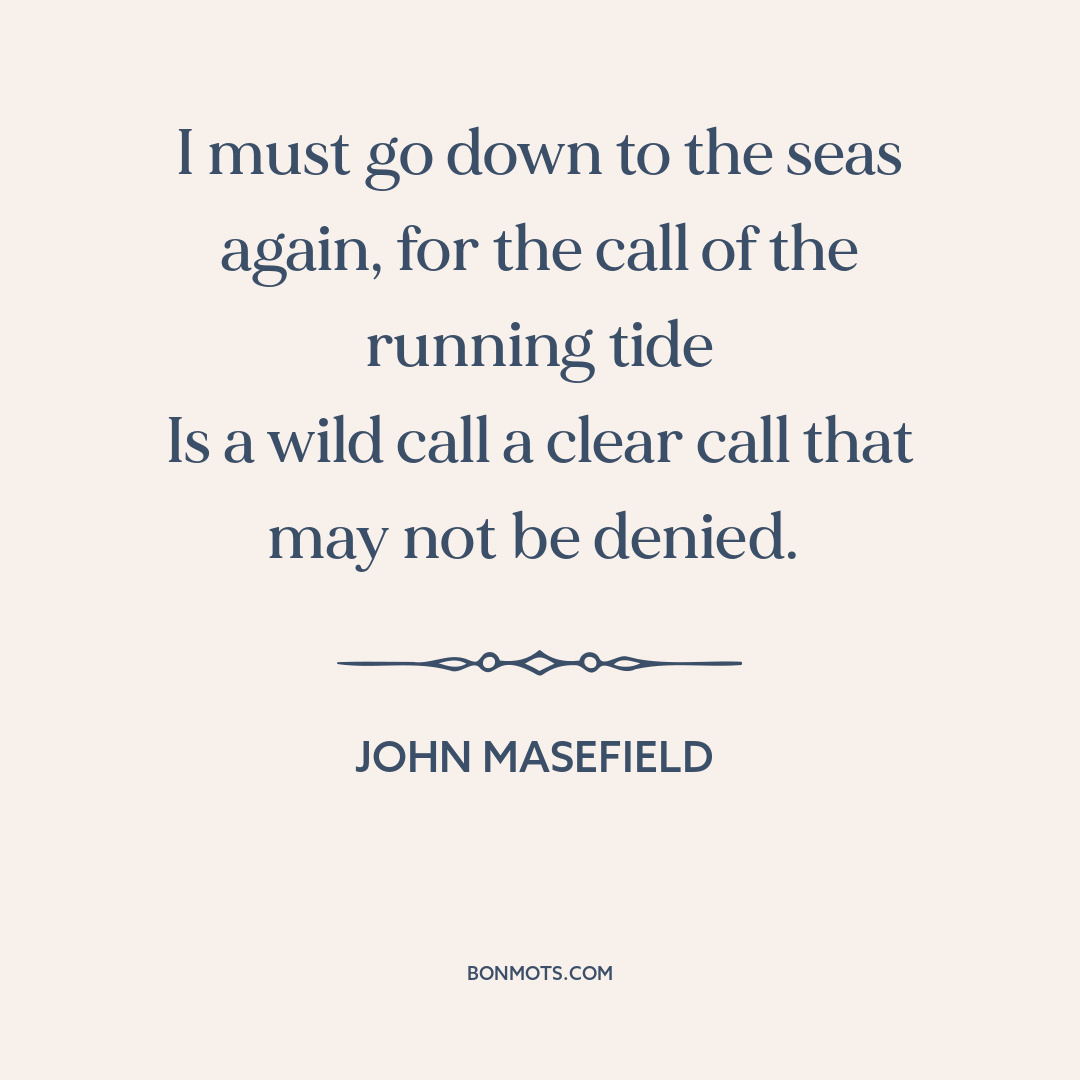 Masefield, John. "Sea-Fever." Salt-Water Ballads. London: Grant Richards, 1902, I. 5.