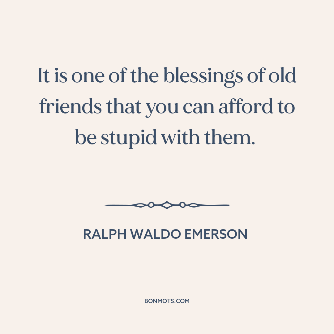 It is one of the blessings of old friends that you can afford to be stupid with them.
