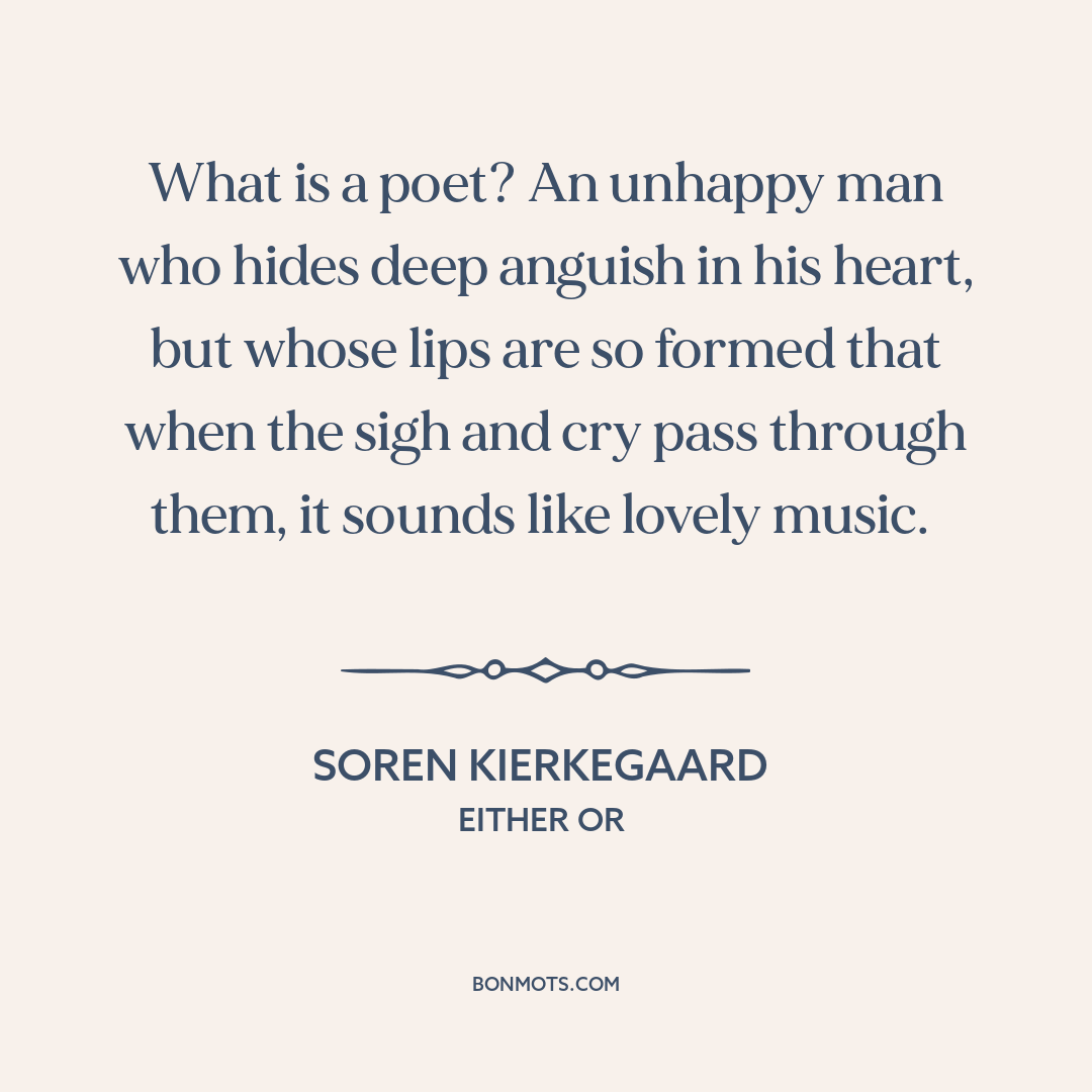 What is a poet? An unhappy man who hides deep anguish in his heart, but whose lips are so formed that when the sigh and cry pass through them, it sounds like lovely music.