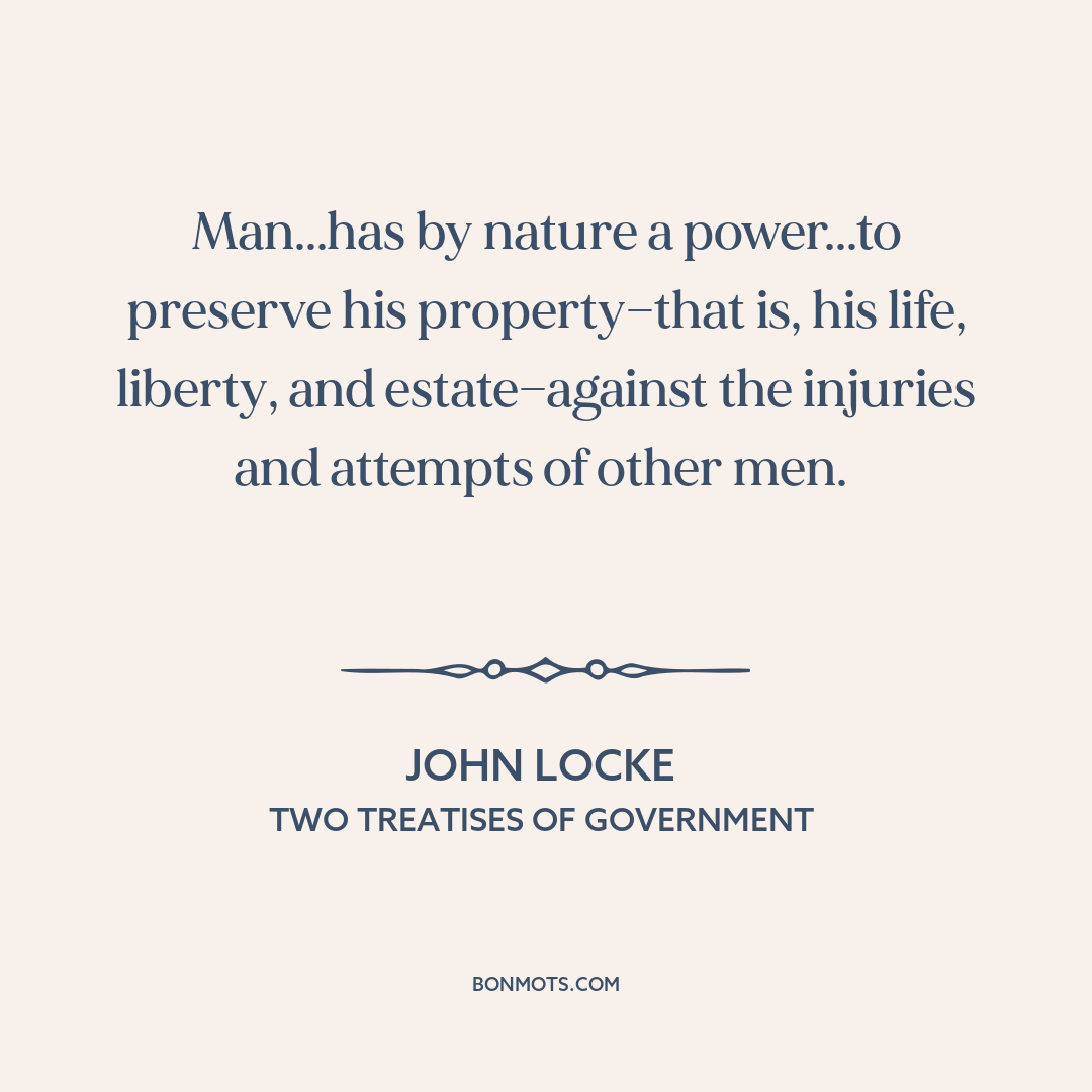 Man...has by nature a power...to preserve his property—that is, his life, liberty, and estate—against the injuries and attempts of other men.