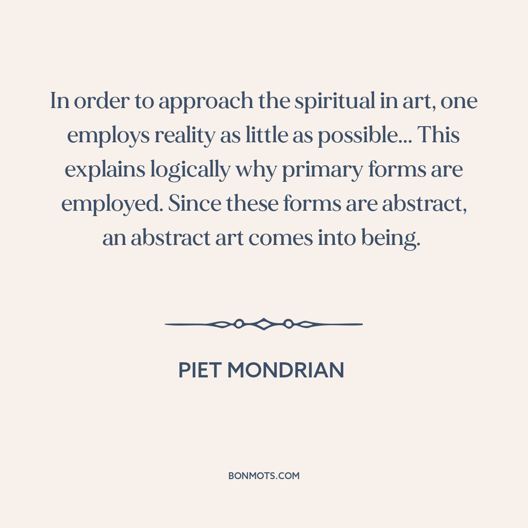 In order to approach the spiritual in art, one employs reality as little as possible... This explains logically why primary forms are employed. Since these forms are abstract, an abstract art comes into being.