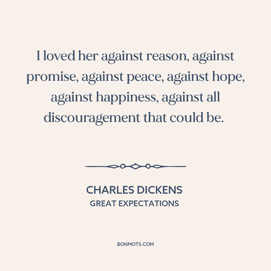 I loved her against reason, against promise, against peace, against hope, against happiness, against all discouragement that could be.