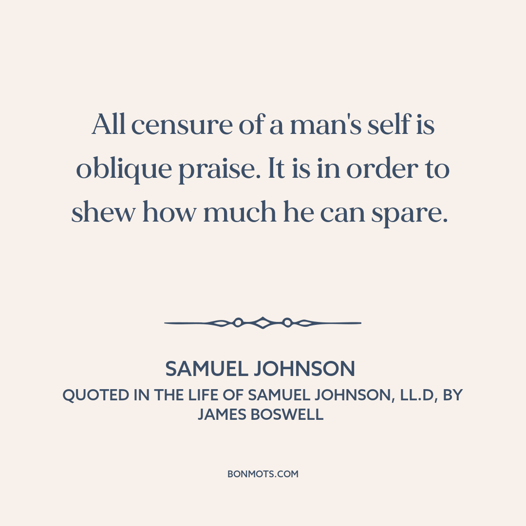 Johnson, Samuel. Quoted in The Life of Samuel Johnson, written by James Boswell, edited by David Womersley. Penguin Classics, 2008.