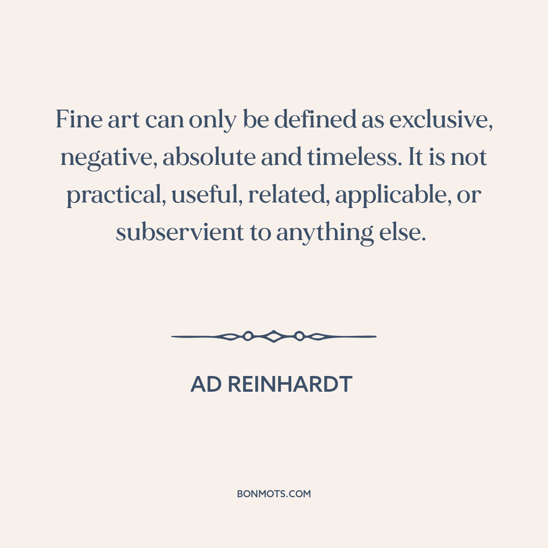 Fine art can only be defined as exclusive, negative, absolute and timeless. It is not practical, useful, related, applicable, or subservient to anything else.