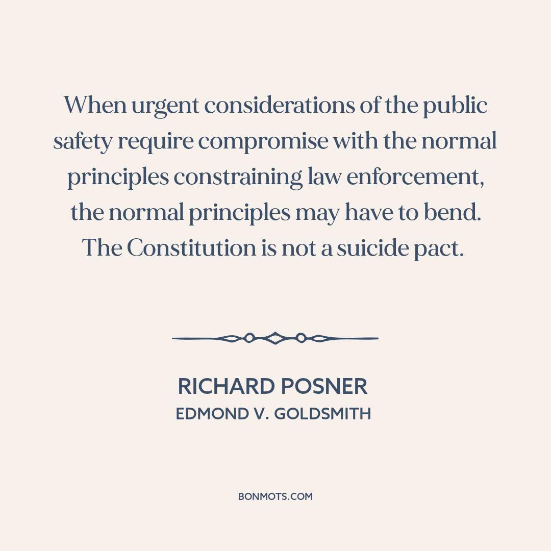 When urgent considerations of the public safety require compromise with the normal principles constraining law enforcement, the normal principles may have to bend. The Constitution is not a suicide pact.