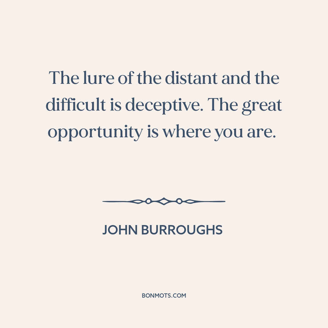 The lure of the distant and the difficult is deceptive. The great opportunity is where you are.