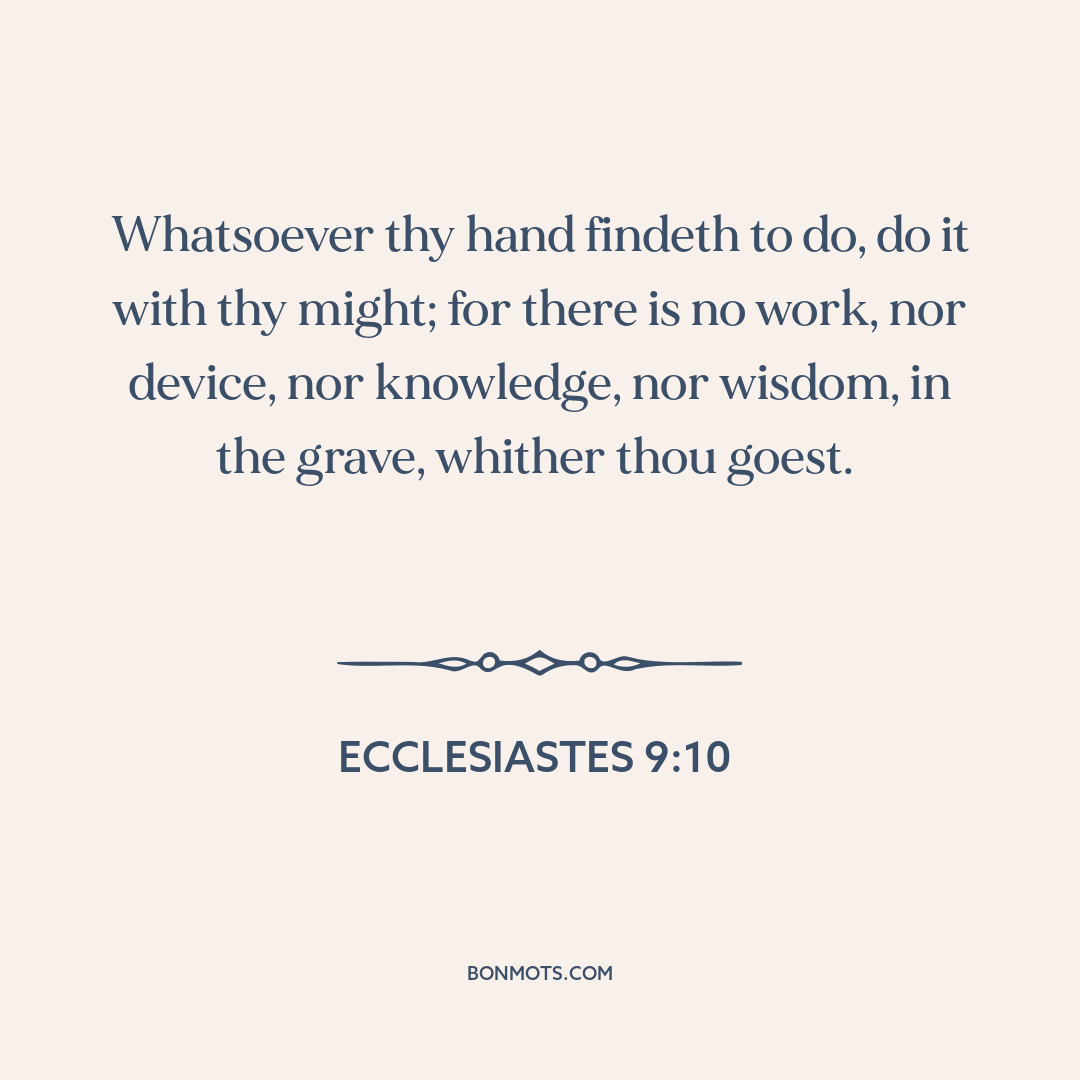Whatsoever thy hand findeth to do, do it with thy might; for there is no work, nor device, nor knowledge, nor wisdom, in the grave, whither thou goest.