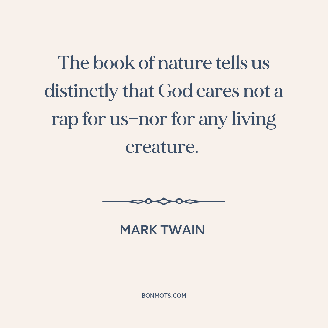 The book of nature tells us distinctly that God cares not a rap for us—nor for any living creature.