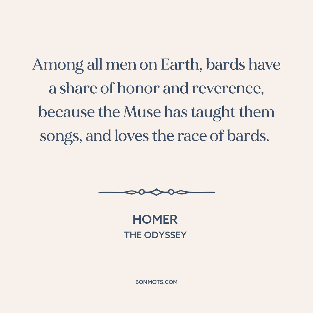 Among all men on Earth, bards have a share of honor and reverence, because the Muse has taught them songs, and loves the race of bards.