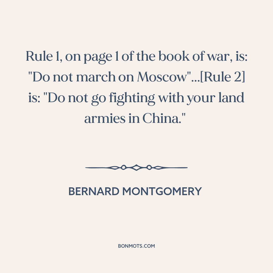 Rule 1, on page 1 of the book of war, is: "Do not march on Moscow"...[Rule 2] is: "Do not go fighting with your land armies in China."