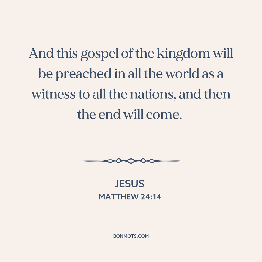 The Holy Bible: The King James Version. 1611. (Matthew 24:14).