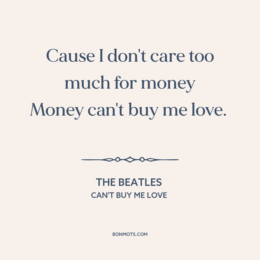 Money can't buy me love.