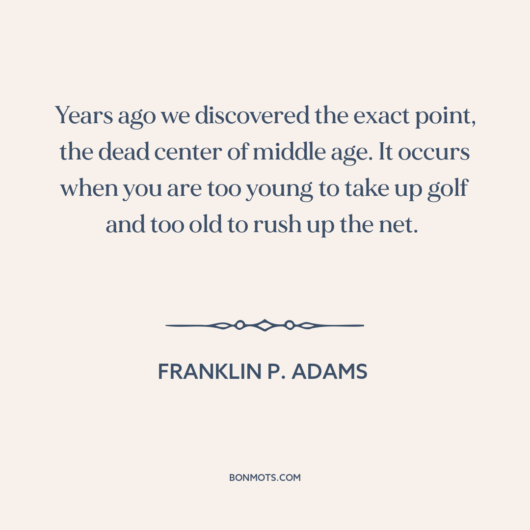 Years ago we discovered the exact point, the dead center of middle age. It occurs when you are too young to take up golf and too old to rush up the net.