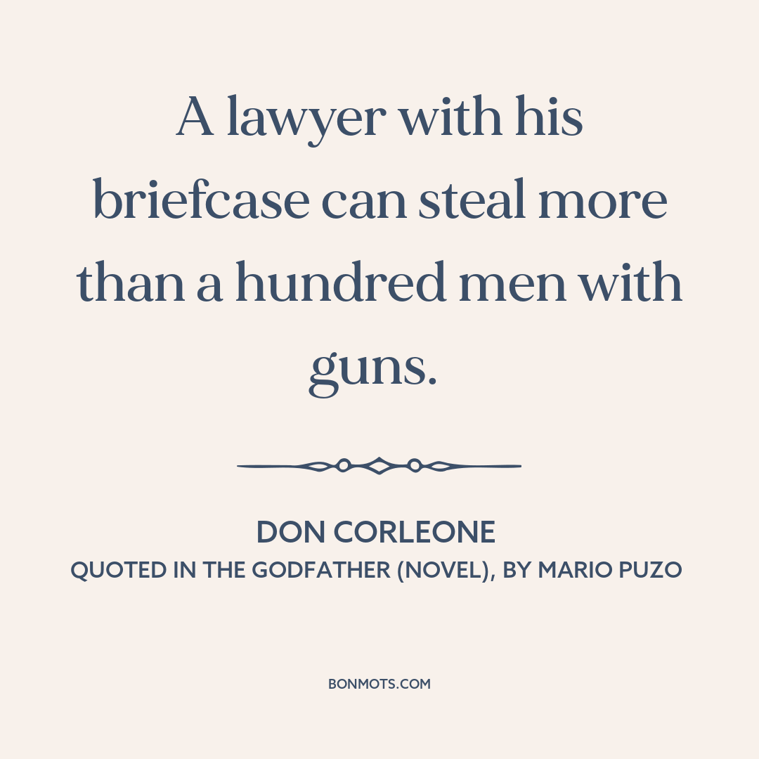 A lawyer with his briefcase can steal more than a hundred men with guns.