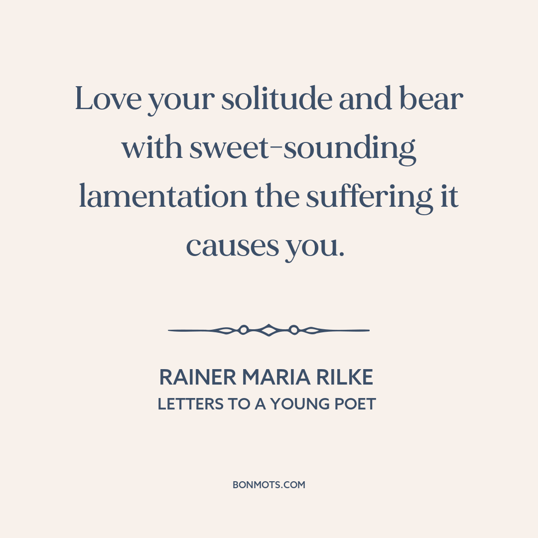 Love your solitude and bear with sweet-sounding lamentation the suffering it causes you.