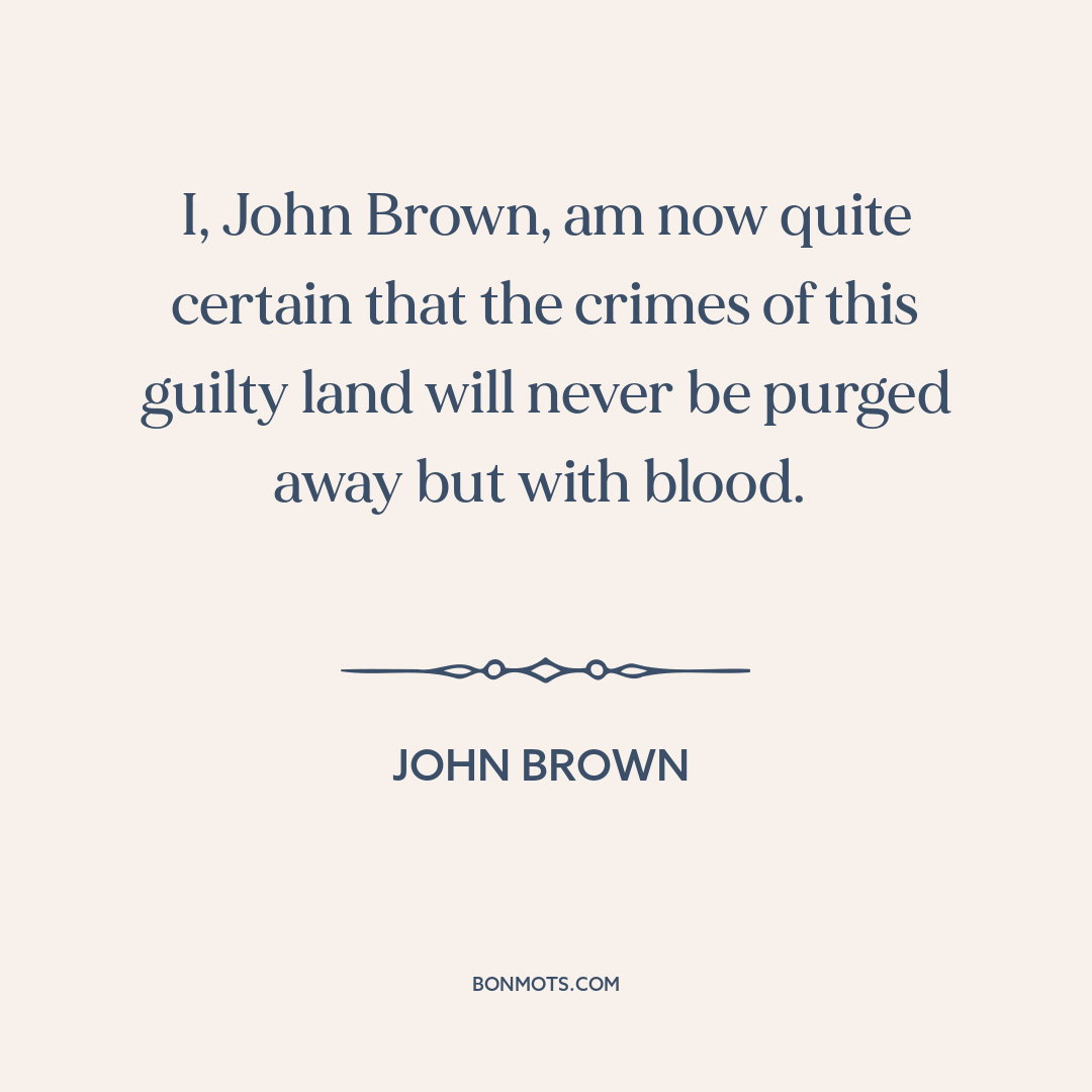 I, John Brown, am now quite certain that the crimes of this guilty land will never be purged away but with blood.