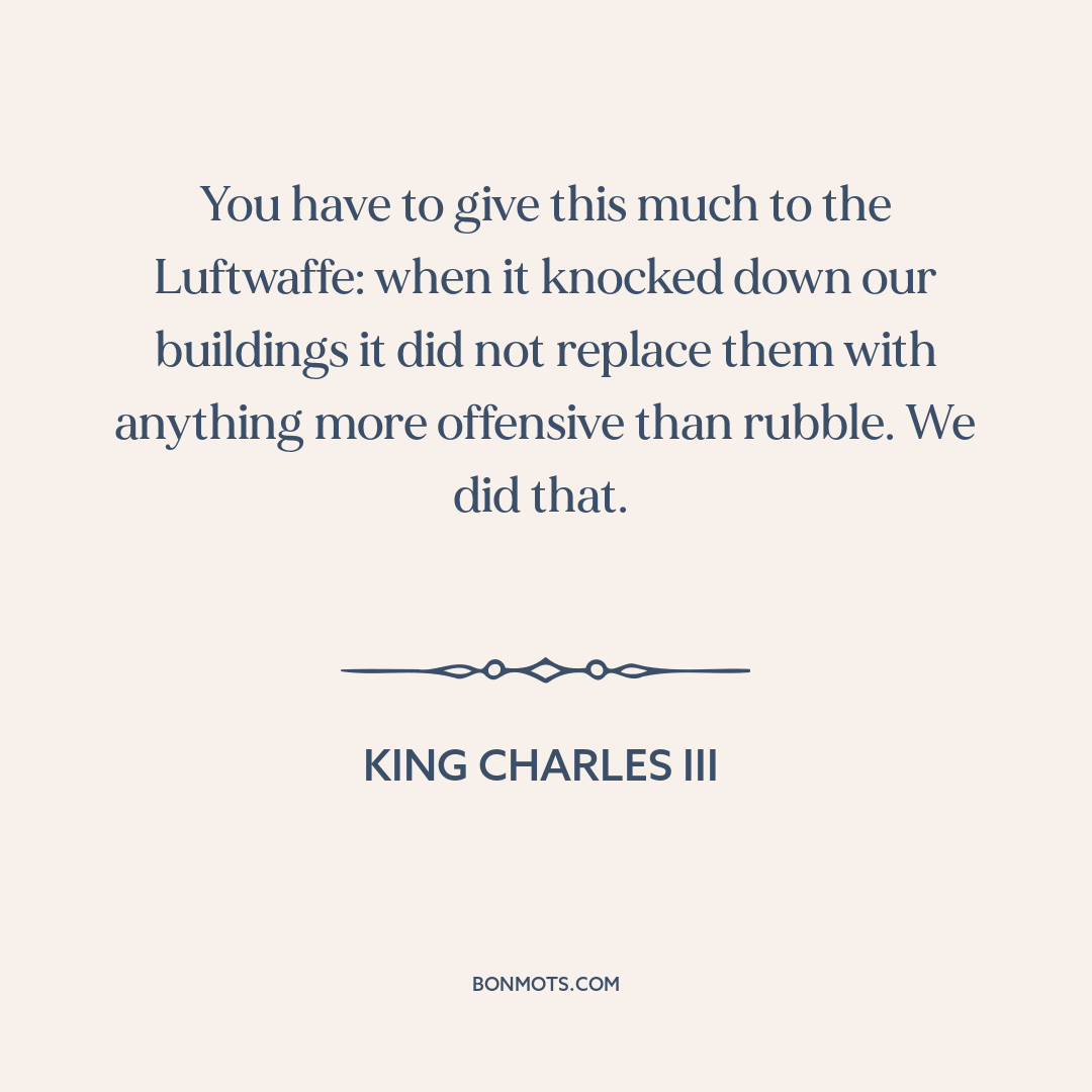 You have to give this much to the Luftwaffe: when it knocked down our buildings it did not replace them with anything more offensive than rubble. We did that.