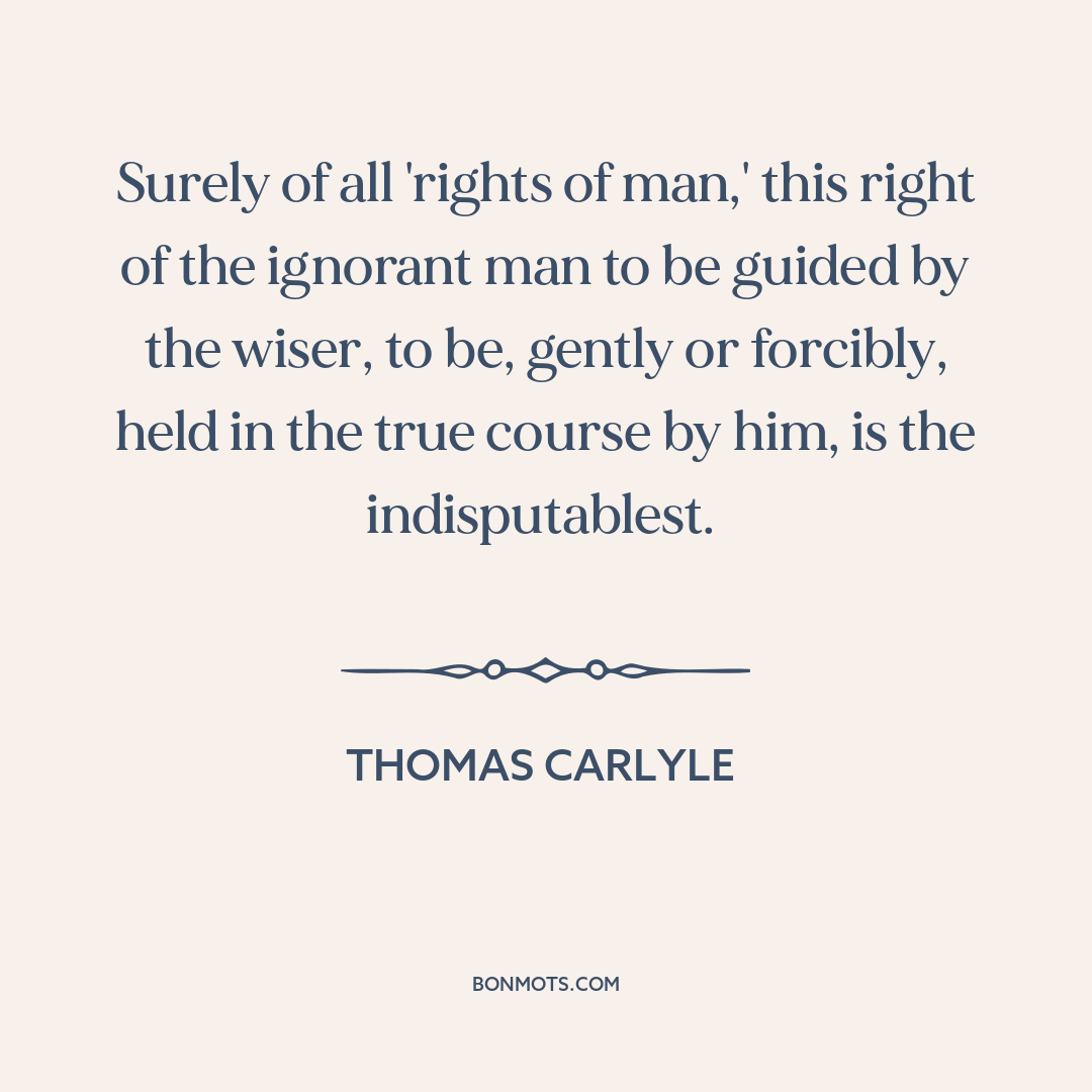 Surely of all 'rights of man,' this right of the ignorant man to be guided by the wiser, to be, gently or forcibly, held in the true course by him, is the indisputablest.