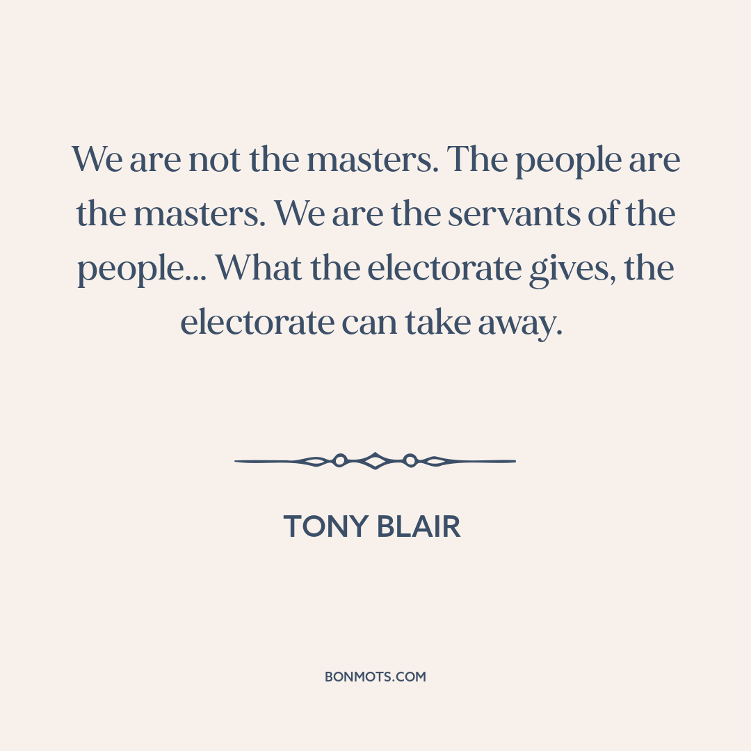 We are not the masters. The people are the masters. We are the servants of the people... What the electorate gives, the electorate can take away.