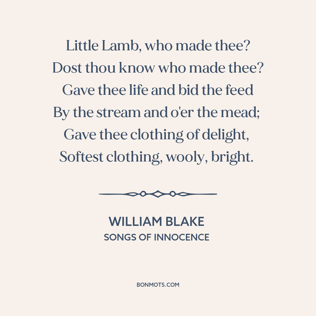 Blake, William. "The Lamb." Songs of Innocence. London, 1789.