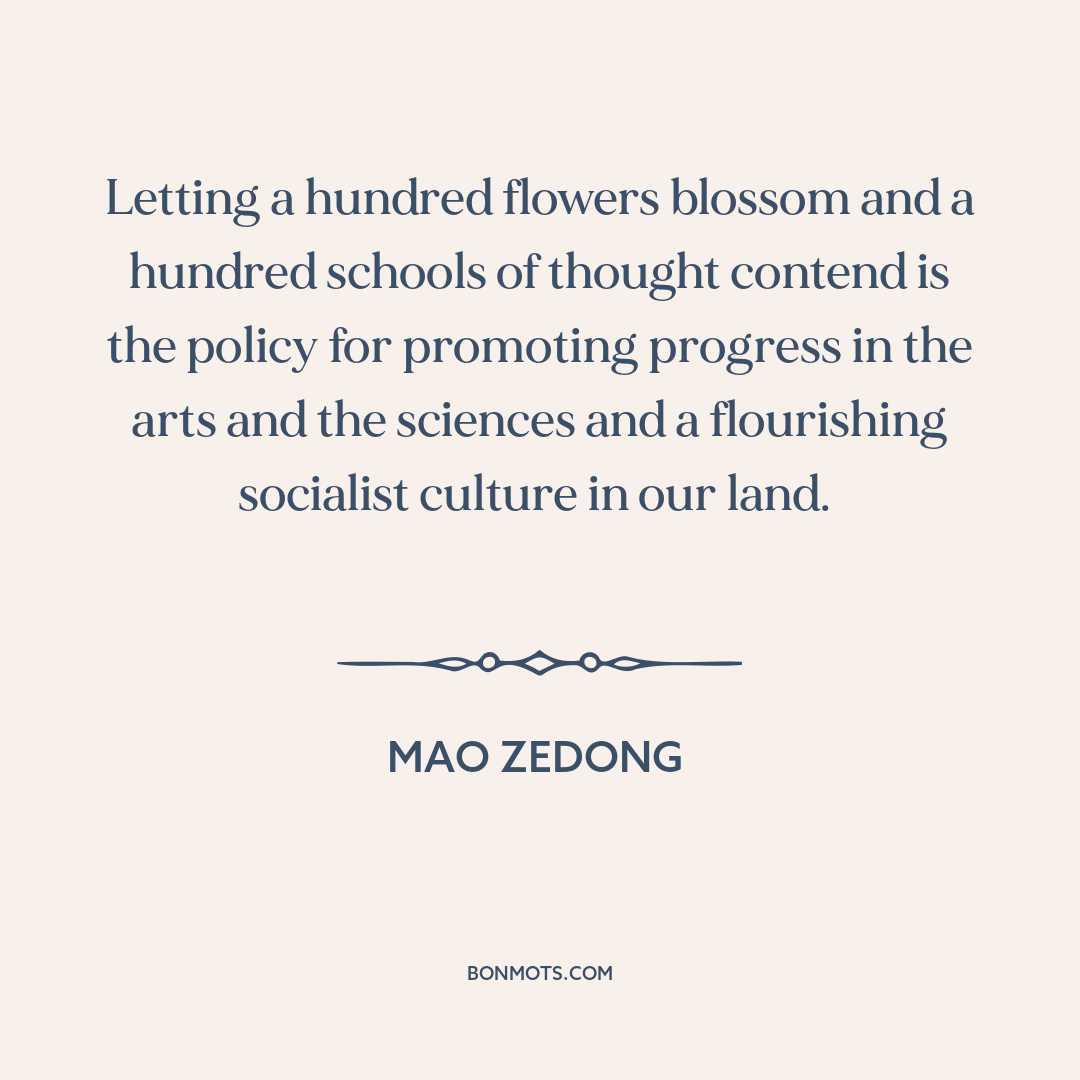 Letting a hundred flowers blossom and a hundred schools of thought contend is the policy for promoting progress in the arts and the sciences and a flourishing socialist culture in our land.