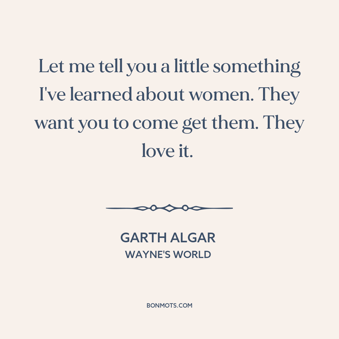 Let me tell you a little something I've learned about women. They want you to come get them. They love it.