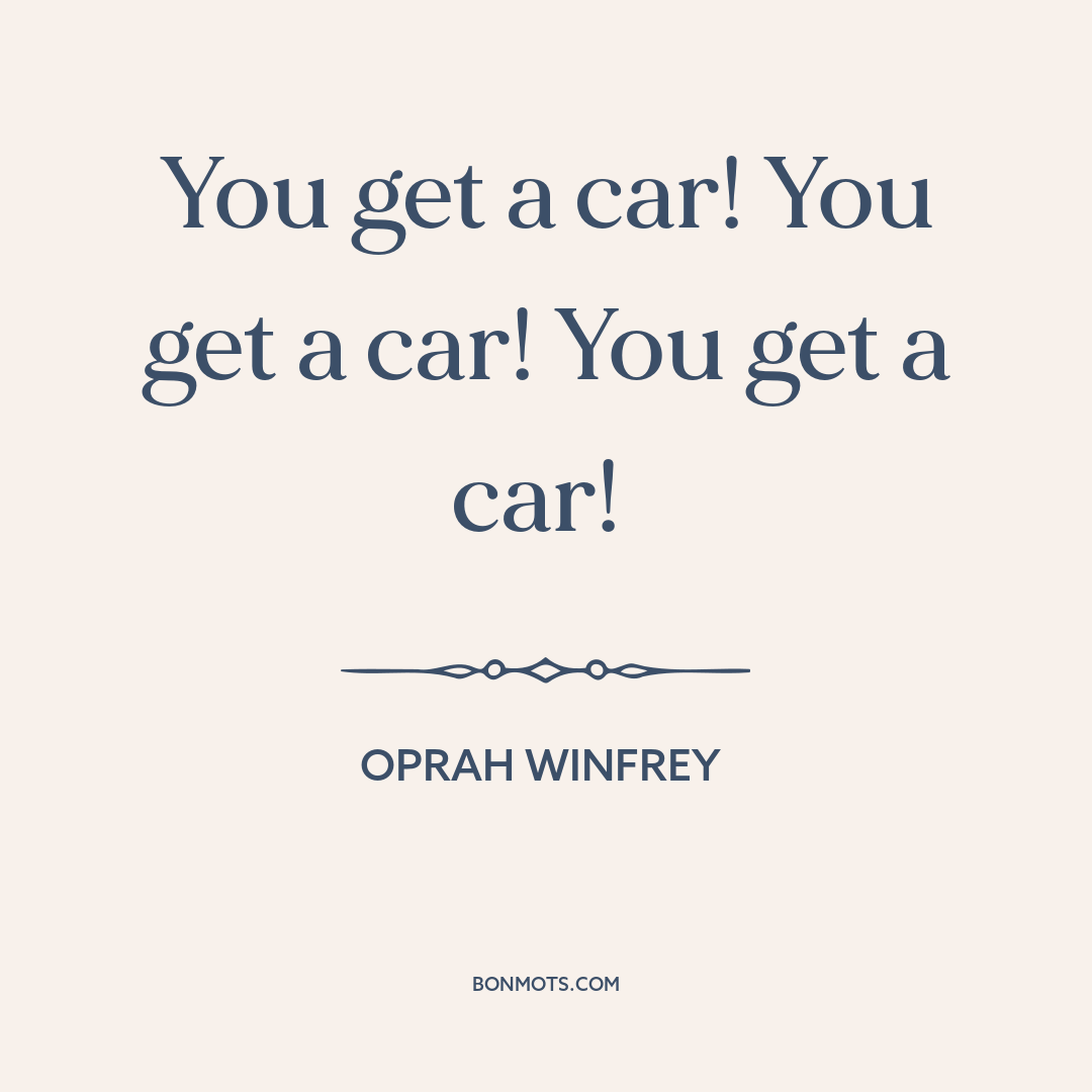 You get a car! You get a car! You get a car!